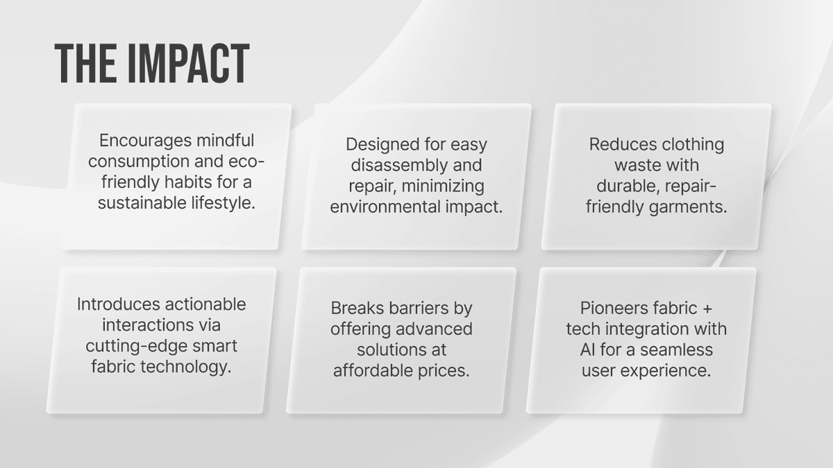 The system combines smart textiles, embedded sensors, and AI-driven insights to move from passive tracking to proactive health support bridging the gap between data and action.