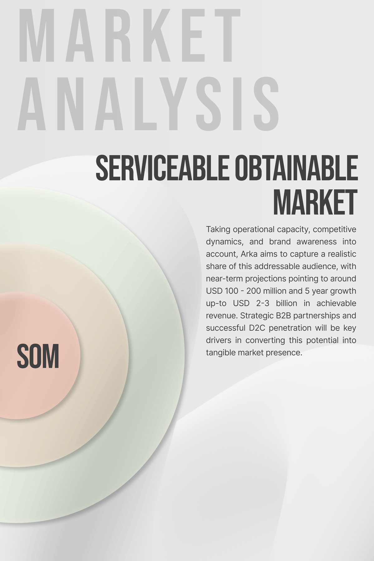 The pitch deck presents ARKA as a focused startup narrative, condensing the problem, solution, and opportunity into a clear five-minute pitch that balances design vision with feasibility.