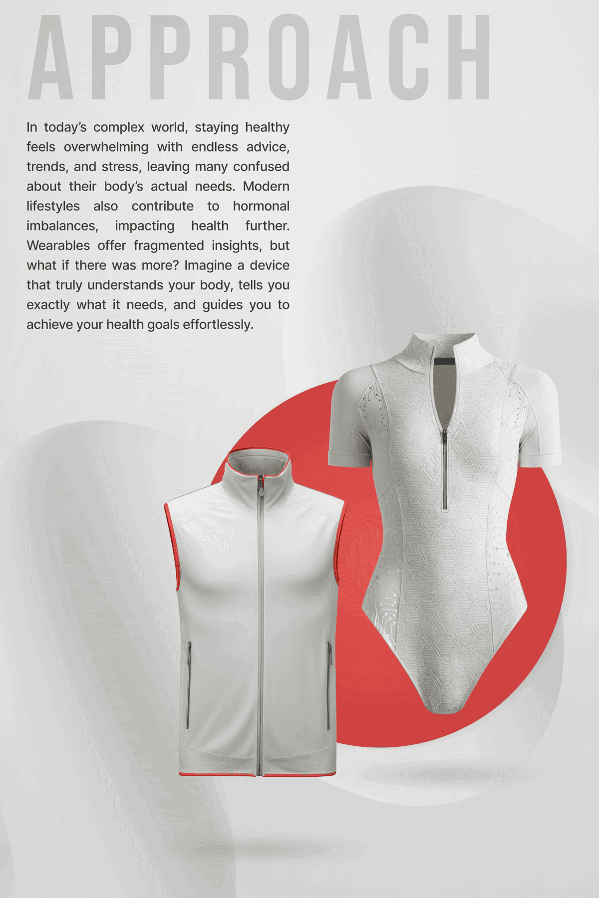 Our team explored the wearables category, questioning whether current health technologies truly integrate into daily life or simply add another layer of management. ARKA emerged as a response to fragmented health tracking reimagining wearables not as devices, but as intelligent, responsive clothing that supports health in real time.